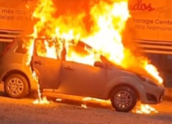 Carro pega fogo no Centro de Brusque e assusta moradores: “não teve o que fazer”