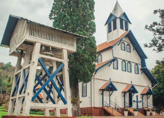 Igreja de madeira de São João do Oeste preserva a cultura alemã do município, que fica localizado no Extremo-Oeste do…