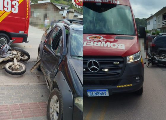 Motociclista sofre fratura exposta após colisão com carro em Guabiruba