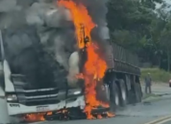 Incêndio atinge caminhão e motocicleta na rodovia Ivo Silveira, em Gaspar
