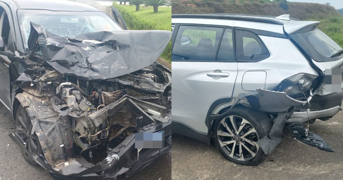 Conforme o relatório, o Corolla trafegava pela alça de acesso da rodovia no sentido Itajaí–Brusque quando o Fiat Cronos colidiu na traseira do veículo.