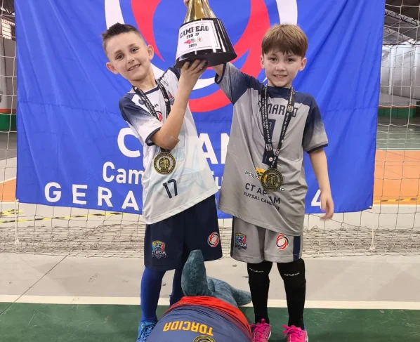 Dois jovens atletas timboenses estão fazendo história no futsal catarinense. O goleiro Bernardo Lenzi e o atleta Henrique Kestring, formados e treinados pelos técnicos Radanes e Radanes Filho, da Academia Leões, foram convocados para representar o CT APCAM/CECAM de Camboriú e, com apenas 7 anos, conquistaram o título do Campeonato Estadual Catarinense de Futsal.