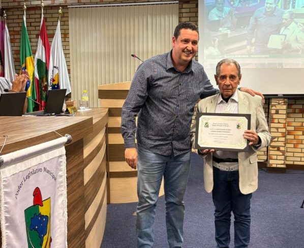 A comenda do Legislativo foi entregue pelo presidente da Câmara, Jean Dalmolin. O reconhecimento do Executivo foi dado a Aurinho por André Vechi, Ari Vequi, pelo vice-prefeito Deco Batisti e por representantes de ex-prefeitos falecidos.