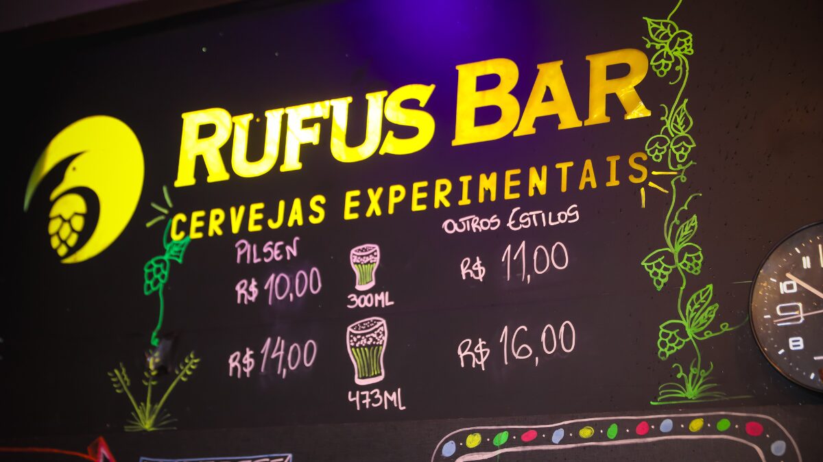 O Rufus Bar já funciona há seis anos na Lagoa da Conceição e surgiu a partir da ideia de abrir uma cervejaria, que se expandiu para o bar de cervejas experimentais. Atualmente, são 20 torneiras de chope de diferentes estilos, de produção própria.