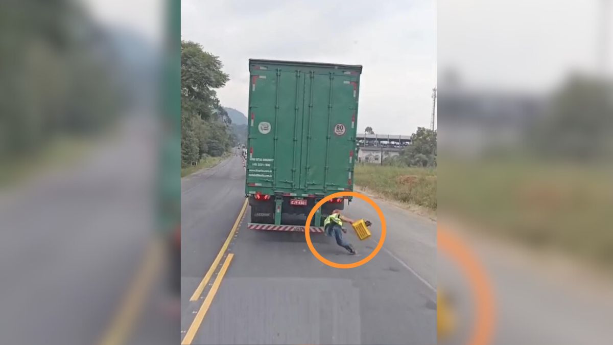 O vídeo foi gravado por um motorista que trafegava pela rodovia — o que também é proibido pelas leis de trânsito. Na imagem é possível observar uma pessoa com colete refletivo, desses usados em obras, pendurada na traseira de um caminhão em movimento. O condutor que fez a gravação mostra que ele estava a 40 Km/h e chega a mencionar que a velocidade está aumentando.