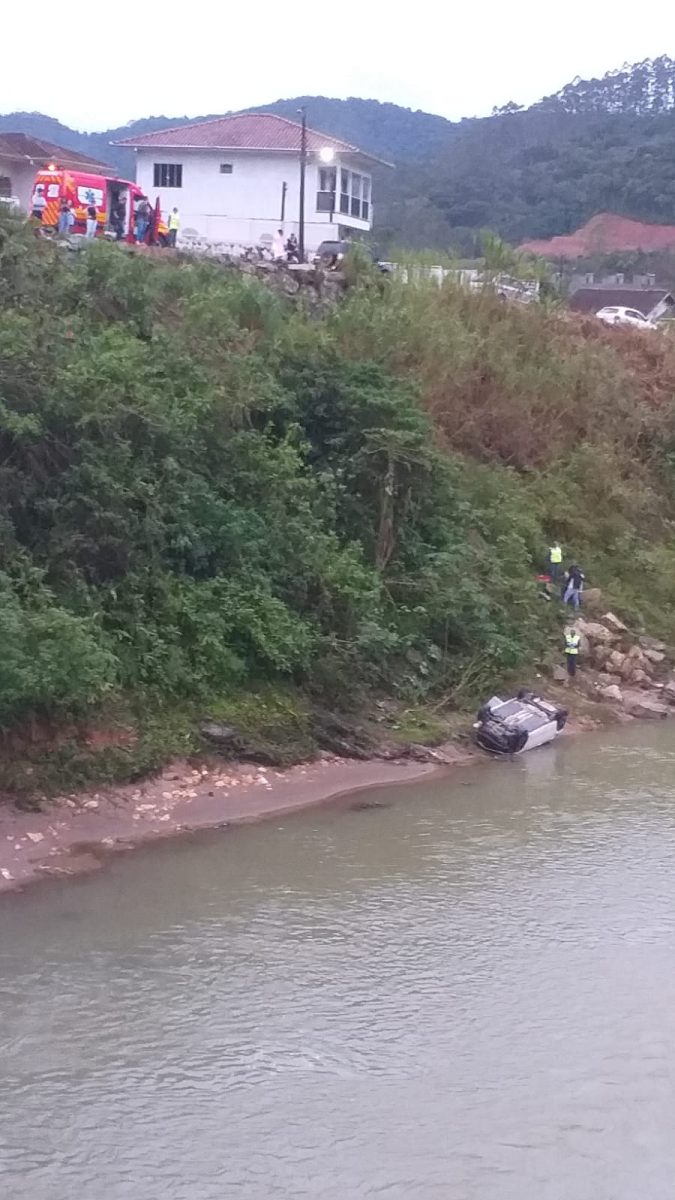Um carro caiu às margens do rio Itajaí-Mirim, na manhã desta terça-feira, 5, em Botuverá. O fato ocorreu próximo da rodovia Pedro Merizio, na rua Domingos Bósio, no bairro Centro.