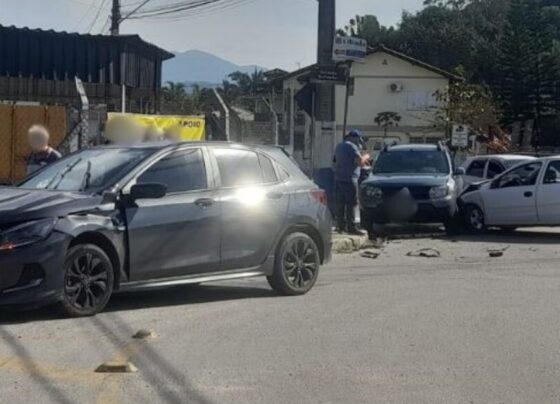 Colisão entre três carros é registrada neste sábado, em Guabiruba