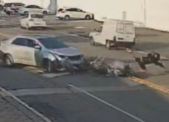Imagens de câmera de segurança mostram o momento da colisão entre carro e moto no trecho urbano da rodovia Antônio…