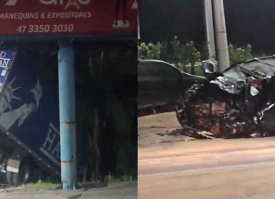 VÍDEO – Mulher morre em grave acidente entre moto e caminhão na BR-101, em Joinville