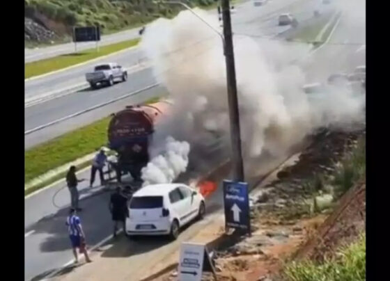 VÍDEO – Carro pega fogo na BR-470, em Blumenau, e motoristas combatem chamas