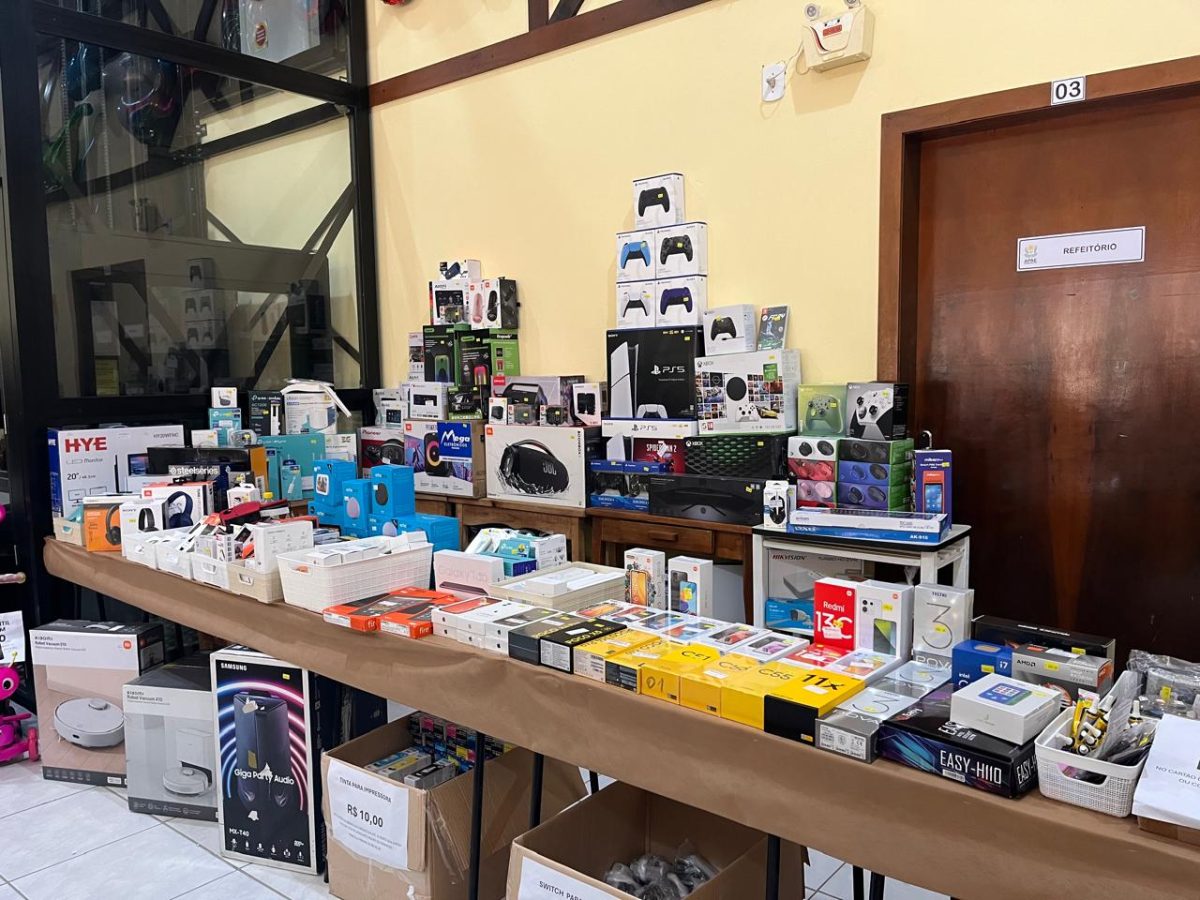 Há limites de quantidade por produto e teto de R$ 2,5 mil por pessoa. Itens à venda incluem roupas, calçados, eletrônicos, brinquedos, perfumes e cosméticos. Pagamentos podem ser feitos em dinheiro, Pix ou cartão, com parcelamento em até 10 vezes (mínimo R$ 50). A arrecadação será revertida para projetos da Apae.