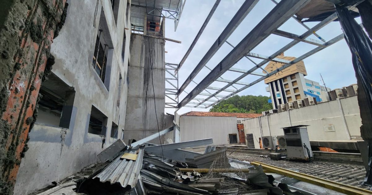 Uma estrutura de obra no Hospital dos Olhos, em Blumenau, desabou com cinco trabalhadores na manhã desta quarta-feira, 5. Um deles morreu e os outros quatro ficaram feridos. A estrutura que colapsou era utilizada para montagem de uma laje.