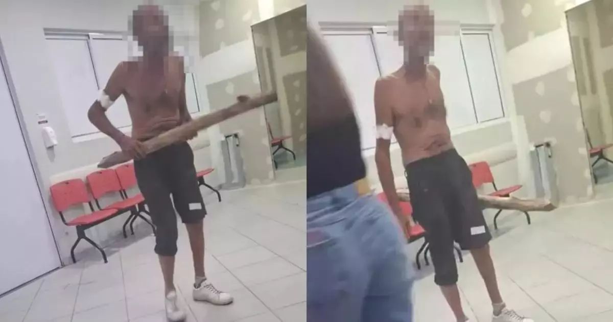 Conforme o hospital, o paciente havia sido socorrido horas antes, por bombeiros, e levado ao local para avaliação. Poucas horas depois, retornou sem camisa, com curativos no braço e em estado de exaltação, assustando pacientes e acompanhantes.