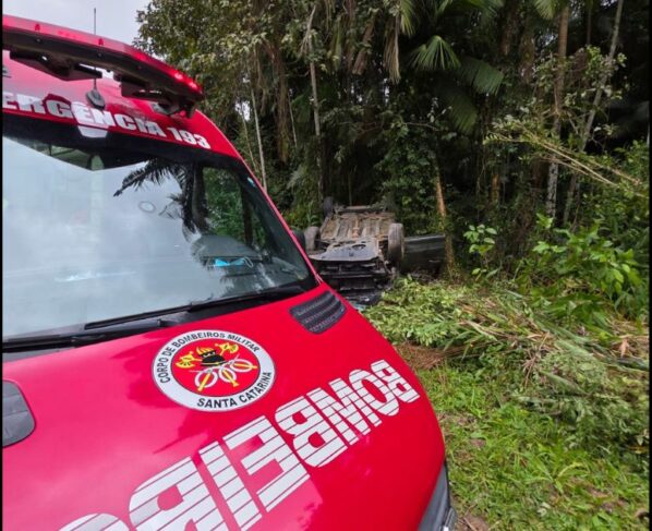 De acordo com o Corpo de Bombeiros, os agentes foram acionados às 15h11. Ao chegarem no local, encontraram o carro Hyundai Creta, de placa Mercosul, capotado.