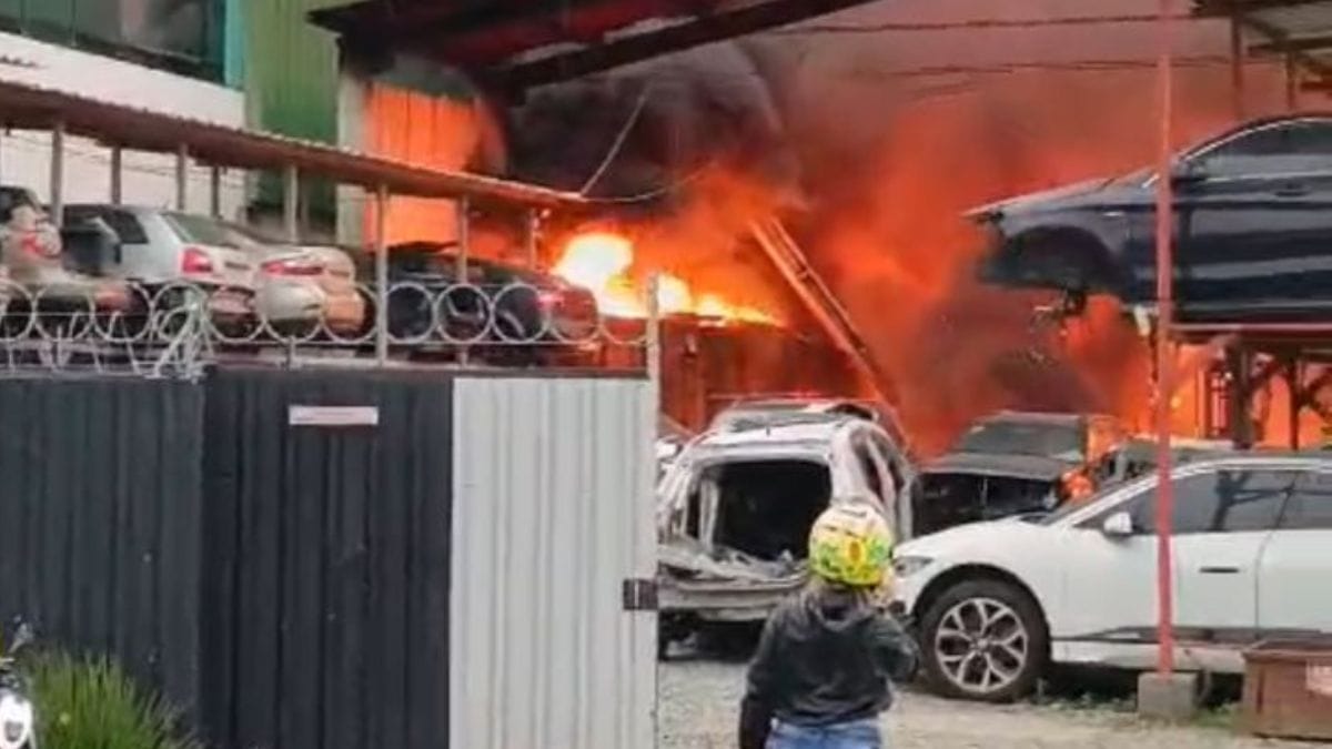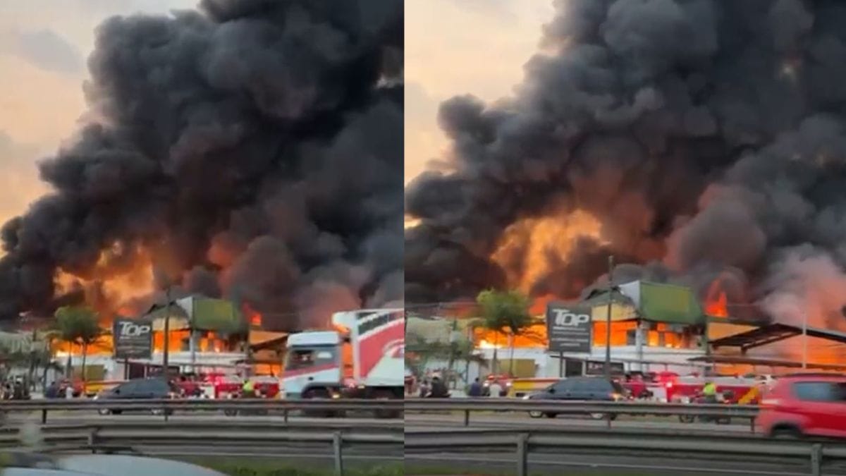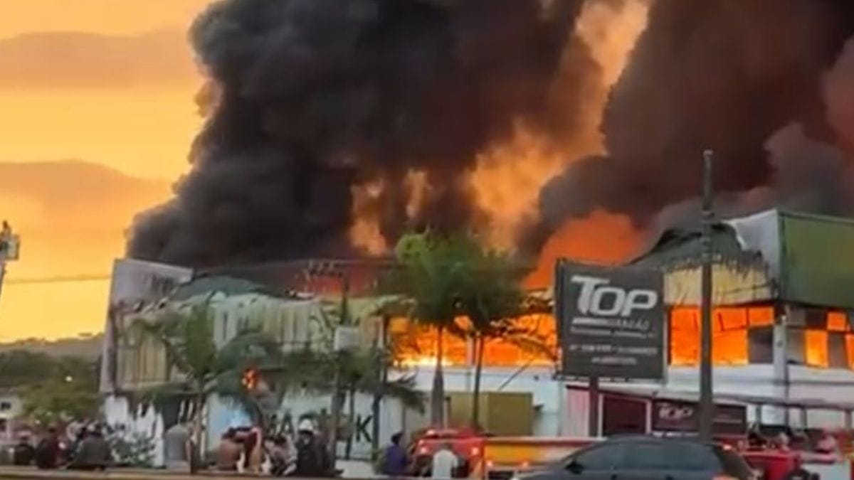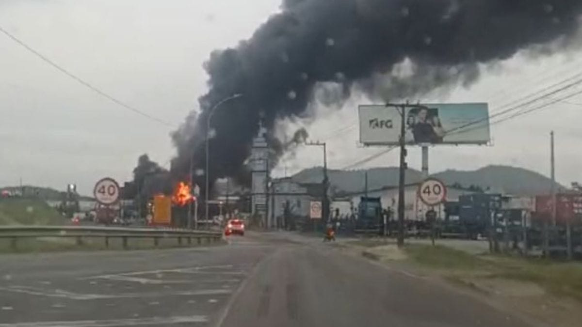 O incêndio, que começou no final da tarde deste sábado, atingiu empresas e consumiu parte dos estabelecimentos na marginal da BR-101. De acordo com informações iniciais do Corpo de Bombeiros Militar (CBM-SC), o fogo teria começado em um galpão de autopeças e atingiu também um galpão logístico ao lado.