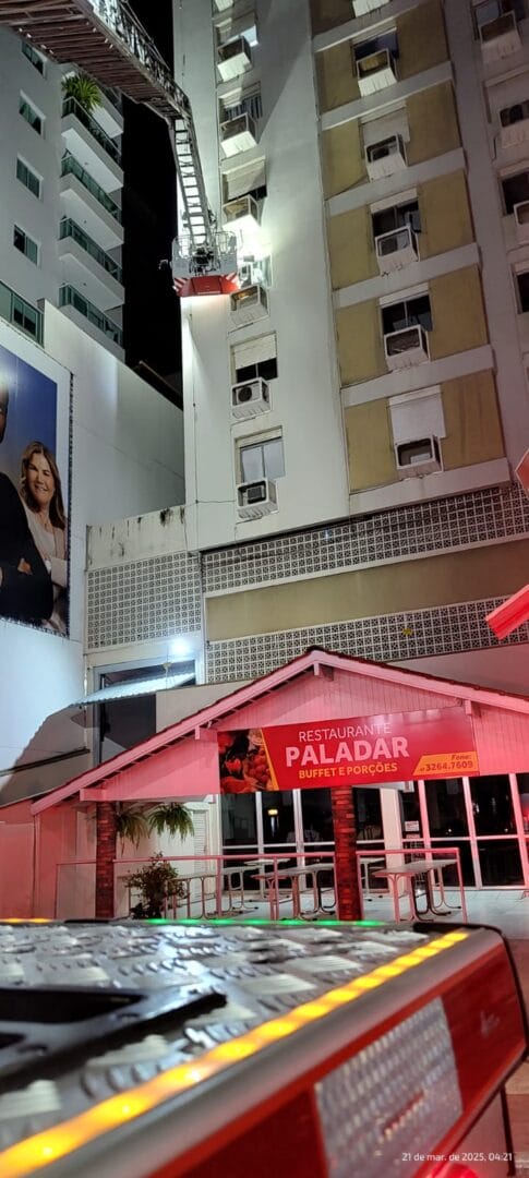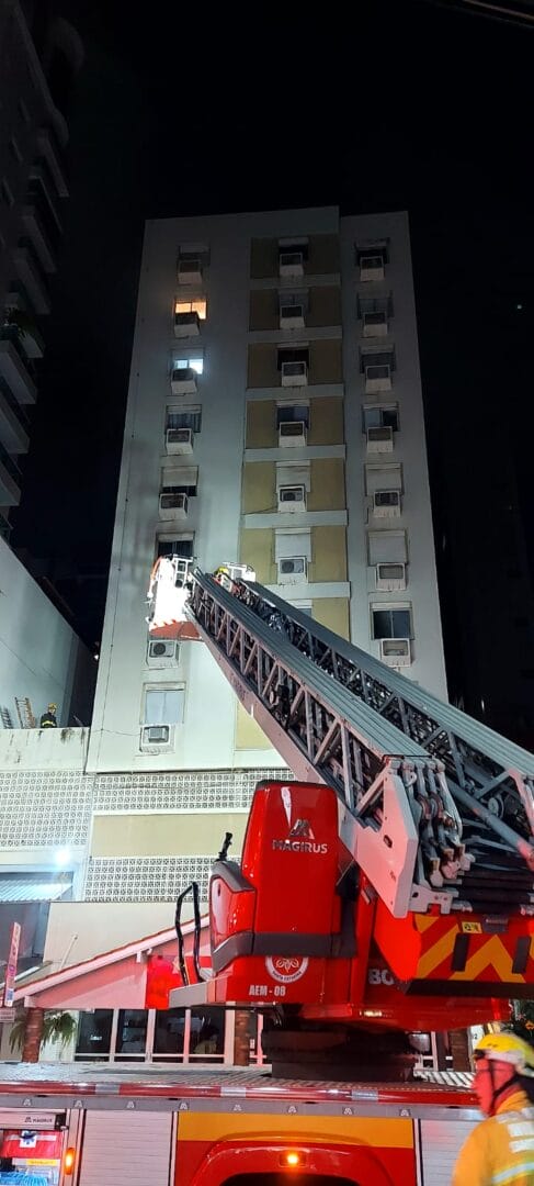 Um incêndio na madrugada desta sexta-feira (21) provocou pânico entre os moradores do Edifício Estrela Mar, no Centro de Balneário Camboriú. As chamas atingiram os apartamentos do terceiro andar e, em um ato de desespero para se salvar, uma pessoa acabou pulando pela janela. Outra ficou pendurada e os bombeiros conseguiram resgatá-la com uma escada.