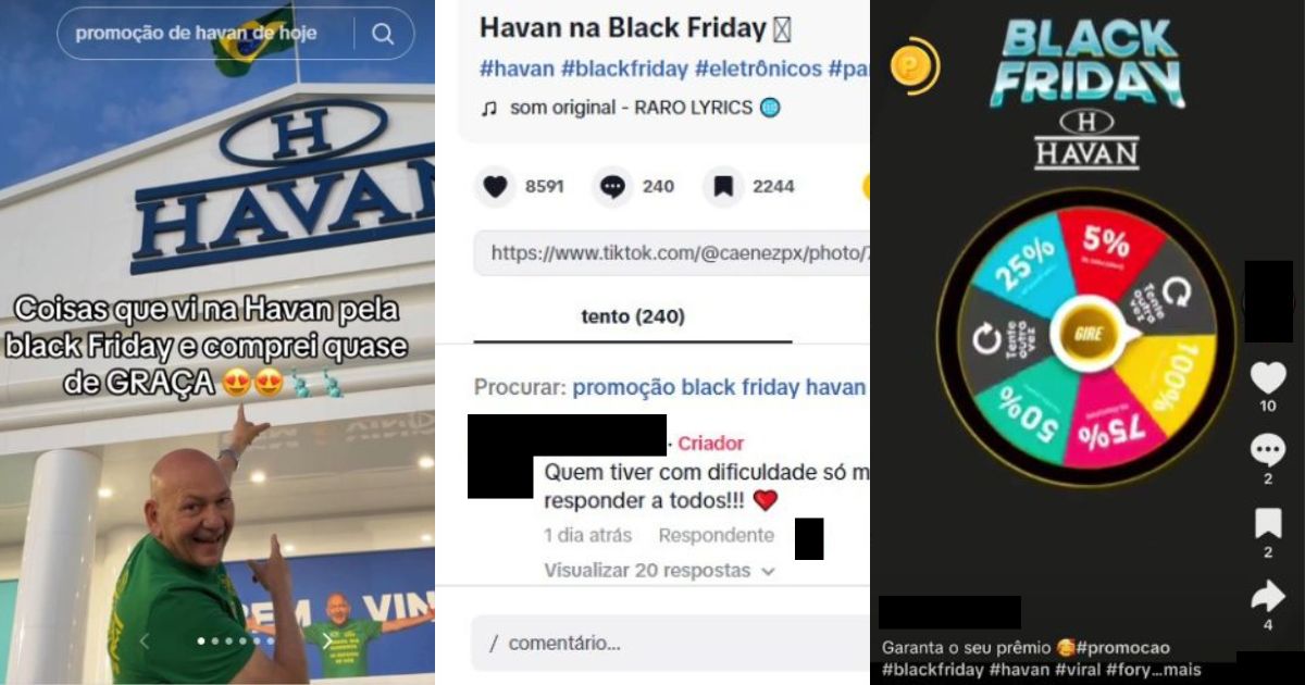 Todas as promoções da Havan podem ser conferidas no site www.havan.com.br, nas redes sociais oficiais @havanoficial, no Facebook, Instagram, LinkedIn, Pinterest, TikTok, X (antigo Twitter) e YouTube, além do site oficial: havan.com.br. Para denunciar os anúncios suspeitos, acesse: havan.semfraude.online.