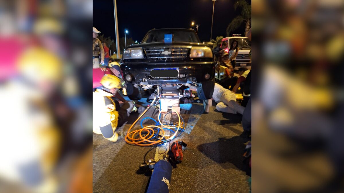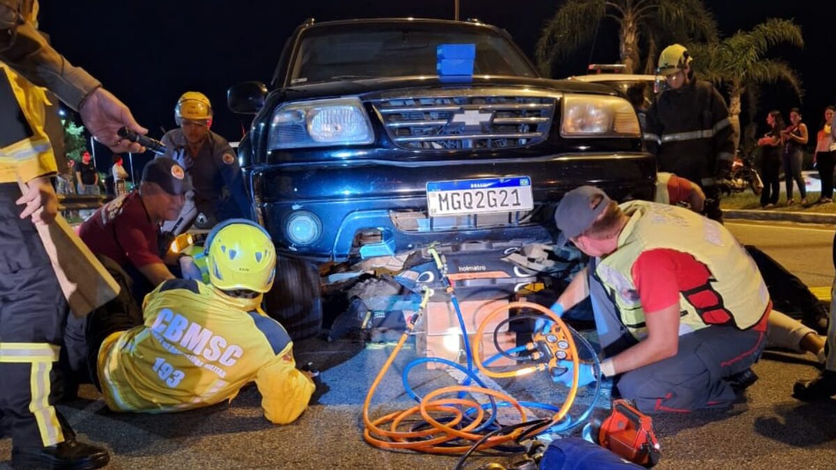 Segundo o Corpo de Bombeiros, a moto teria batido em um dos carros, e na sequência o motociclista teria sido lançado para debaixo do segundo automóvel envolvido no acidente.