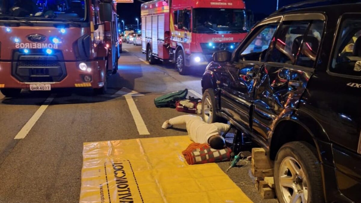 Um motociclista ficou preso sob um carro após um acidente envolvendo mais dois veículos na Via Expressa Sul, em Florianópolis, no final da tarde desta terça-feira (6). As equipes do Corpo de Bombeiros fizeram a estabilização do automóvel e levantamento do veículo para que a vítima pudesse ser retirada da cena.