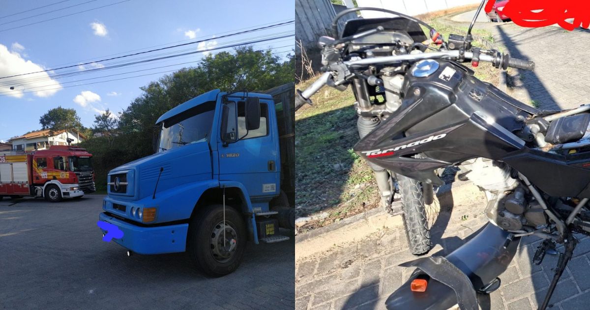 Um motociclista de 33 anos ficou gravemente ferido após colidir com um caminhão na tarde desta sexta-feira, 19, na rua Alberto Muller, bairro Limeira Baixa, em Brusque. O acidente foi registrado por volta das 15h50 e mobilizou equipes do Corpo de Bombeiros Militar, Samu e Polícia Militar.