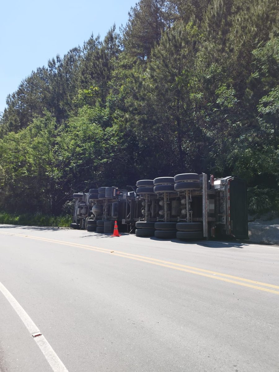 Um motorista de 30 anos ficou ferido após o tombamento de uma carreta na rodovia Pedro Merizio, no bairro Pedras Grandes, em Botuverá, na manhã desta segunda-feira, 13. O acidente ocorreu por volta das 8h20 e mobilizou o Corpo de Bombeiros, a Polícia Militar e a Polícia Militar Rodoviária (PMRv).