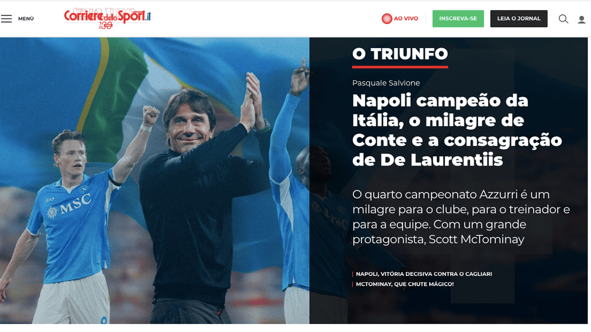 – O quarto campeonato Azzurri é um milagre para o clube, para o treinador e para a equipe. Com um grande protagonista, Scott McTominay – escreve o jornal italiano Corriere dello Sport.
