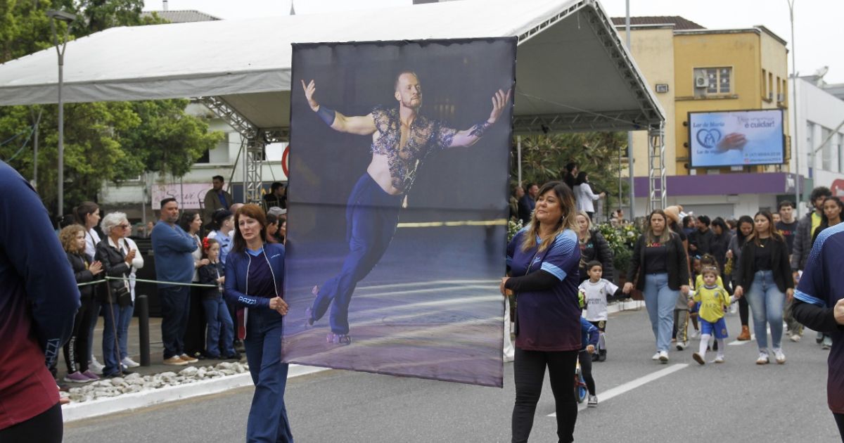 O professor de patinação artística Leandro Luzzi, que morreu na queda de um balão em Praia Grande (SC), foi homenageado no desfile de aniversário de 165 anos de Brusque neste domingo, 3. Leandro, que morava no município, foi uma das oito vítimas fatais do acidente, registrado em 21 de junho.