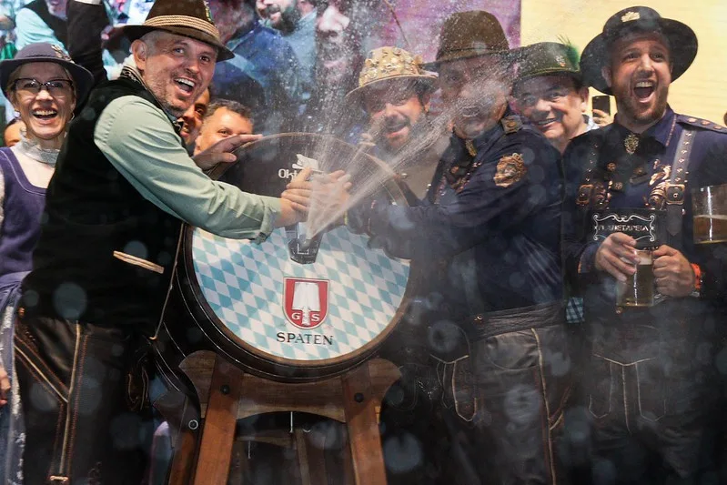 A celebração da 40ª edição da festa mais alemã das Américas anos começou oficialmente nesta quarta-feira, dia 8, e a cerimônia celebrou a tradição e confirmou o início da festa mais segura da história. Até à meia-noite, mais de 26 mil pessoas passaram pelos portões da Vila Germânica, 12 mil a mais que em 2024 (com 14.891 visitantes). O ponto alto da noite foi o tradicional momento da sangria do primeiro barril de chope. Sob a expectativa da multidão, a realeza da festa e as autoridades deram o tom da alegria que se espalhou pelos pavilhões.