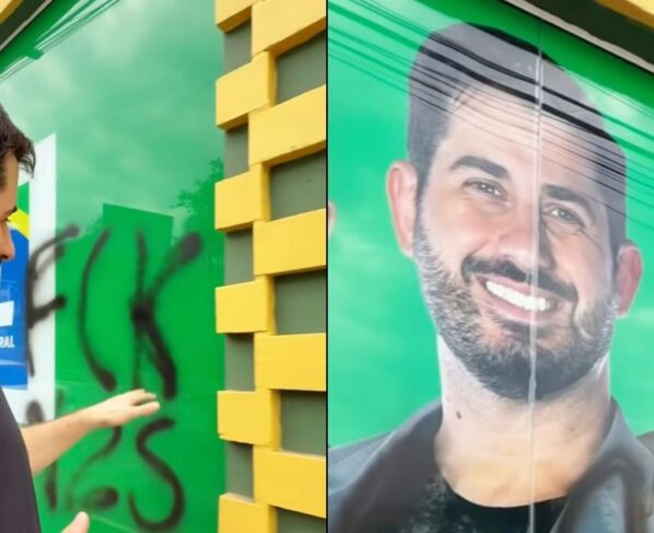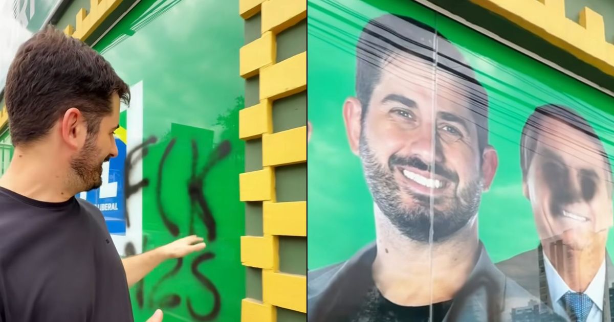 Foi escrito “fck nzs”, que remete a um protesto contra nazistas. O rosto do ex-presidente Jair Bolsonaro (PL), que está em uma foto na lateral do diretório, também foi pichado. Vechi chamou o autor de covarde e de vagabundo, e disse que um boletim de ocorrência foi registrado.