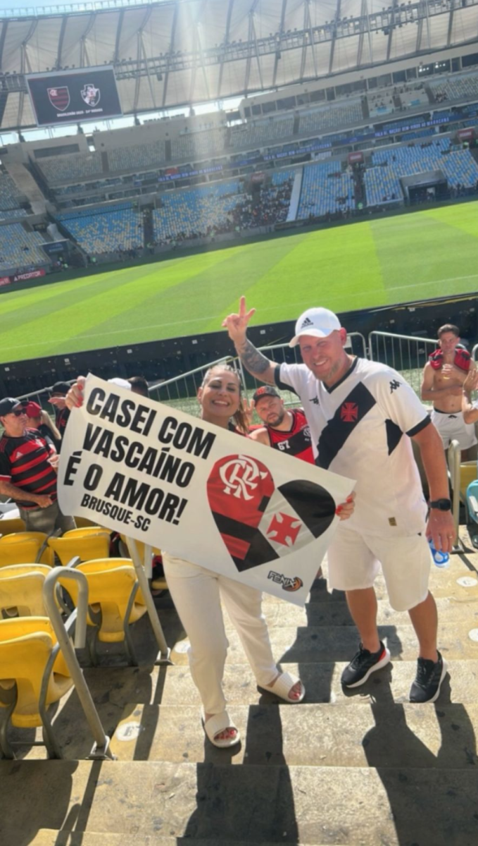 Tatiane conta que assistir a um jogo entre os dois times era um sonho do casal. Ela ainda levou uma faixa para o estádio com a mensagem: “casei com vascaíno. É o amor”. Logo abaixo da frase, apareciam o nome de Brusque e um coração formado pelos símbolos dos dois clubes.
