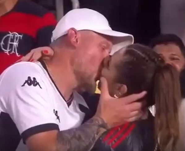Logo após a cena, a comentarista Luana Maluf e o narrador Jorge Iggor falaram sobre o momento. “Beijão aí. Eu preciso comentar o beijão também? É o amor”, disse Luana. Enquanto Jorge falou: “Ah, coisa linda. Um vascaíno e uma rubro negra. Coisa linda”.