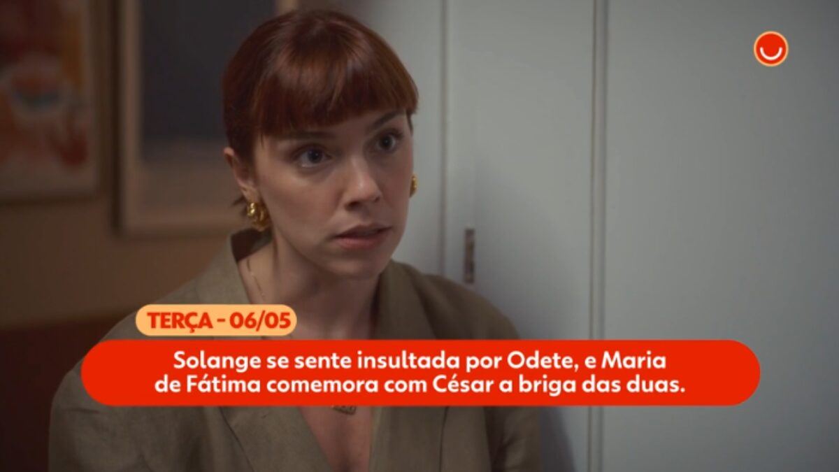 Odete registra o momento em que Maria de Fátima cumprimenta Afonso. Celina e Afonso percebem que Odete flerta com o garçom que foi contratado para o jantar na casa de Solange. Solange se sente insultada por Odete. Solange se surpreende com a reação de Afonso ao saber da tentativa de suborno de sua mãe. Maria de Fátima comemora com César a briga entre Solange e Odete. Heleninha revela a Ivan que voltou a pintar por causa da conversa que teve com ele. Bartolomeu avisa a Eunice que foi demitido. Fátima questiona Raquel quando a mãe lhe entrega um envelope de dinheiro dizendo que é pagamento do seguro de Rubinho.