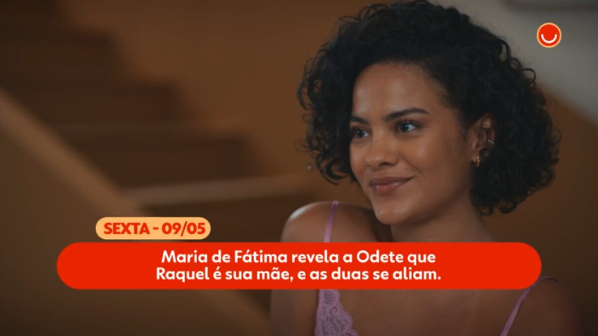 Maria de Fátima revela a Odete que Raquel é sua mãe. Odete se alia a Maria de Fátima. Eunice conta a Bartolomeu sobre seu trabalho como modelo. Ivan estranha a mudança de Maria de Fátima em relação à mãe. Raquel conta a Ivan que conversou com Renato e que tem certeza de que a mala não é dele. Raquel expulsa César de seu restaurante, ao se deparar com ele no local perguntando sobre Fátima. Maria de Fátima escuta Raquel dizer a Ivan que entregará o conteúdo da mala a Marco Aurélio.