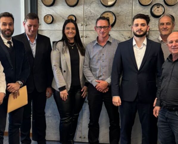 Eles conversaram também com o secretário de Agricultura do estado, Carlos Chiodini, e passaram pelo gabinete do deputado estadual Adilson Girardi (MDB).