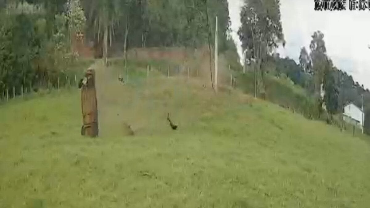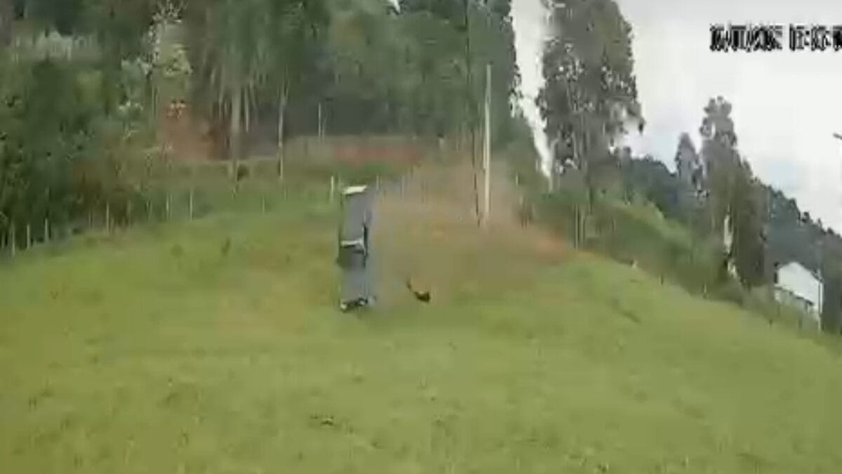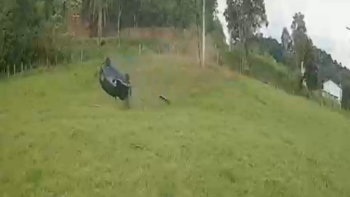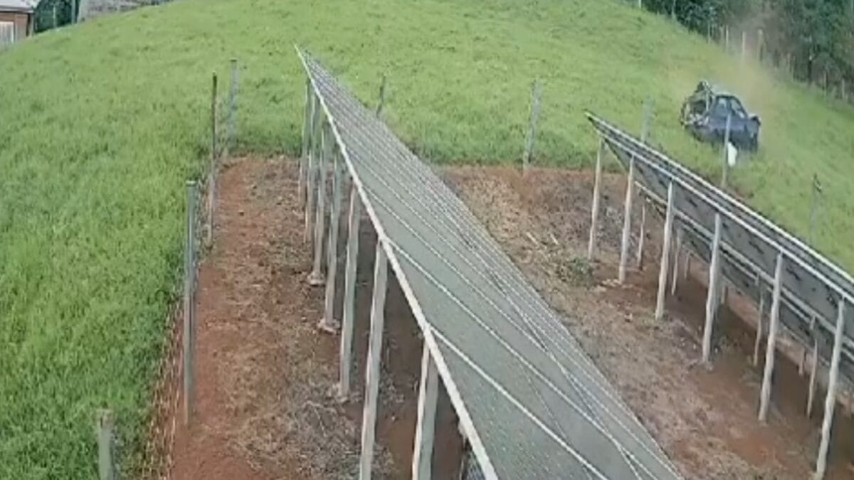Um pedestre se salvou por pouco de um acidente em Caibi, no Oeste do Estado, no final da tarde de domingo (2). Um carro que transitava pela SC-283 saiu da pista e capotou momentos depois do homem passar pelo local. O condutor do veículo precisou ser encaminhado ao hospital.