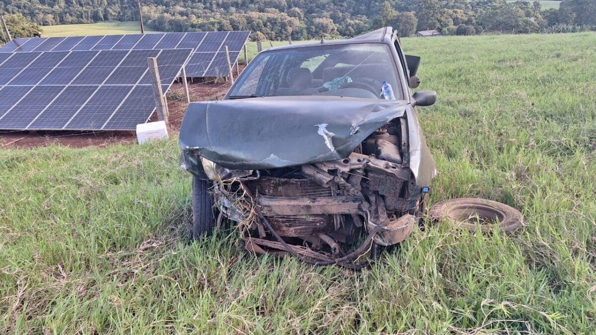 O acidente aconteceu no Km 168,900 da SC-283, em Caibi, por volta das 17h de domingo. As equipes da Polícia Militar Rodoviária (PMRv) foram acionadas para atender a ocorrência e constataram que se tratava de uma saída de pista seguida de capotamento.